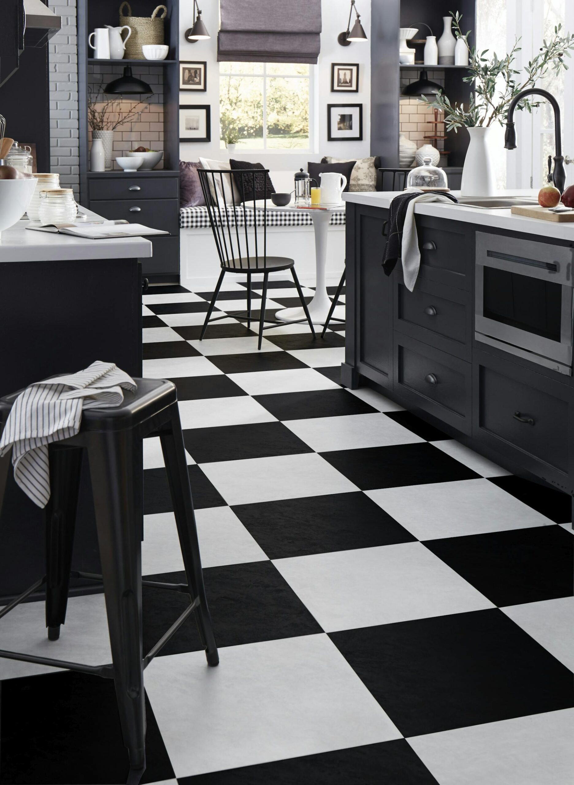 Regardless of whether your aesthetic preference is modern or traditional, a checkerboard pattern is a timeless design that suits almost any room. The Villa tile, available in an 18″ x 18″ format, boasts a stunningly brushed weathered concrete surface that brilliantly captures classic traditions, transforming them into a visually tasteful blend of modern sophistication. Villa comes in three coordinating colors, giving you the adaptability for personal customization. Villa tiles can be installed in a single color, paired in a checkerboard pattern or you can mix all three colors together for a truly unique design. The checkerboard pattern depicted in many photos on this page primarily uses the colors Coal and Sandstone. To recreate this pattern, you will need to order both Coal (FXT422) and Sandstone (FXT420).